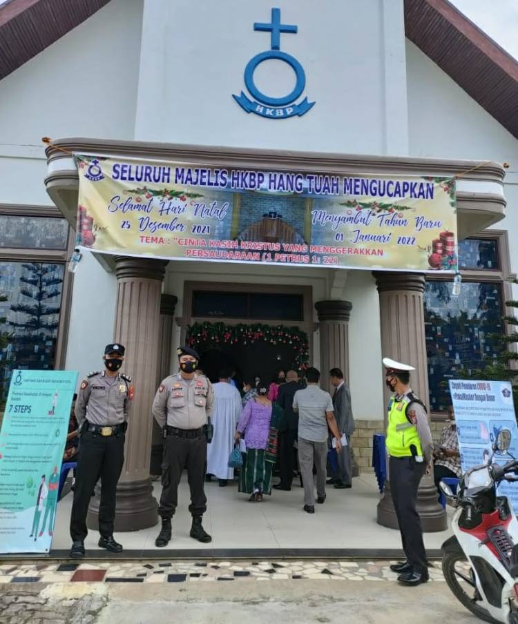 Selain Berikan Rasa Aman Beribadah, Polsek Bagan Sinembah Juga Pastikan Jemaat Patuhi Prokes