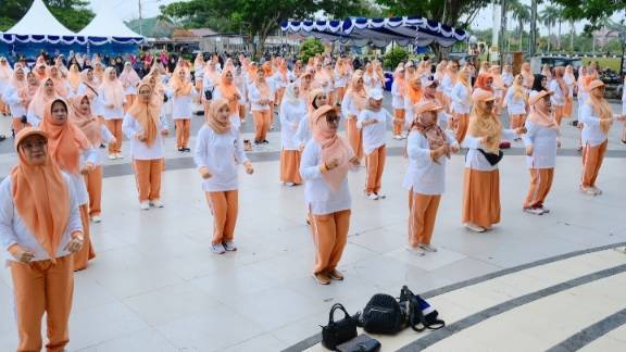 Senam Bersama dan Bagikan Doorprize Memeriahkan HUT Ke-24 DWP Siak