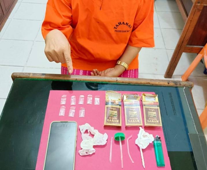 IRT inisial S bersama barang bukti narkoba saat diamankan Polsek Siak Hulu, Rabu (16/11/2022) dinihari.
