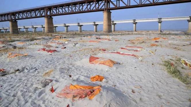 Ribuan jenazah korban COVID-19 India dikubur dibuang dan dikubur di tepi sungai.