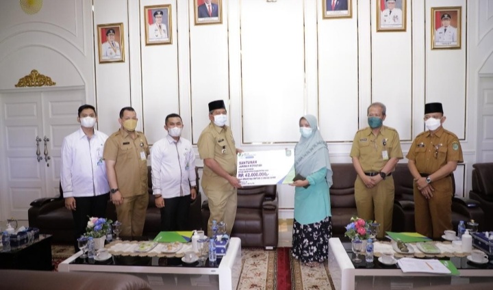 "Pada audiensi ini, kami juga memberikan Santunan Jaminan Kematian, atas nama Alm. Muslim Tenaga Honorer di Dinas Kesehatan Kabupaten Siak, dan beasiswa untuk 2 orang anak sejumlah Rp42 juta, yang diserahkan oleh ahli Waris istrinya yang langsung diserahkan oleh bapak Bupati Siak," jelas Yori.