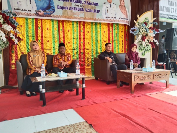 Prosesi serah terima jabatan Camat Tanjung Medan antara Bahrul SSos MM kepada Ahendra SSos MIP.