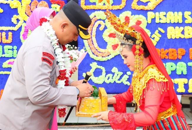 INHU, datariau.com - Prosesi Serah Terima Jabatan (Sertijab) Kepala Kepolisian Resor (Kapolres) Indragiri Hulu (Inhu), Polda Riau berlangsung dengan khidmat, tertib dan lancar. Selain tradisi Pedang Pora, kedatangan Kapolres yang baru juga disambut dengan kesenian silat hingga tepung tawar.