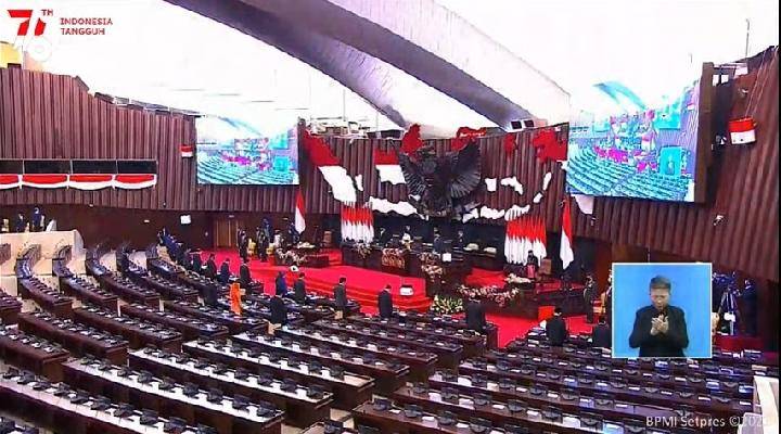 Sidang Tahunan MPR RI dan Pidato Kenegaraan Presiden RI dalam rangka peringatan HUT ke-76 RI, serta Sidang Bersama DPR RI dan DPD RI digelar hari ini Senin, 16 Agustus 2021. SEKRETARIAT PRESIDEN