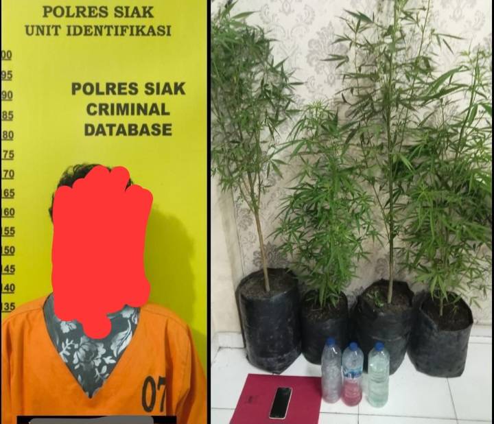 Simpan 4 Batang Tanaman Diduga Ganja, Pria di Kandis Ditangkap Satres Narkoba Polres Siak
