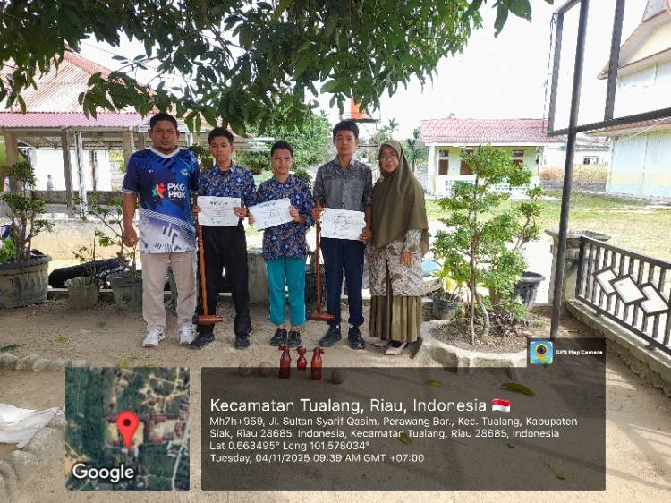 Siswa siswi SMPN 10 Tualang berprestasi pada ajang trofeo woodball jilid II, tingkat Provinsi Riau di dampingi Waka SMPN 10 Tualang dan pelatih (guru PJOK), Adril Ihsan SPd.