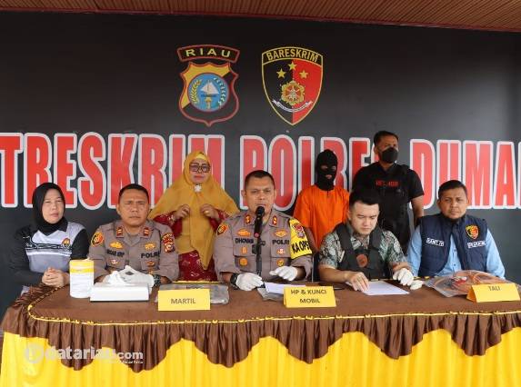 Kapolres Dumai AKBP Dhovan Oktavianton didampingi Kasat Reskrim Polres Dumai AKP Bayu Ramadhan Effendi, Kasi Humas Polres Dumai AKP Yusnelly, Kapolsek Bukit Kapur Iptu Irsanuddin Harahap dan Kanit PPA Sat Reskrim Polres Dumai Ipda Hermawan Gunawan saat pelaksanaan Press Conference menjelaskan, SR (38) adalah suami korban dan merupakan pelaku utama dalam pembunuhan sadis Kartini (41) yakni mayat wanita yang sebelumnya ditemukan dalam keadaan dibungkus karung di pinggir parit yang berada di bawah jembatan, tepatnya di Jalan Akasia, Kelurahan Bukit Kapur, Kecamatan Bukit Kapur, Kota Dumai.