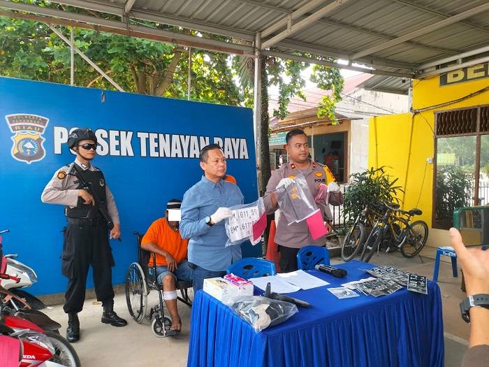 Konferensi Polsek Tenayan Raya tentang pengungkapan kasus Curanmor.