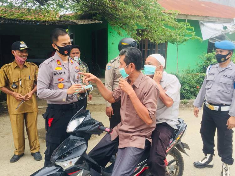 Upika Simpang Kanan yang dipimpin Kapolsek Iptu Angga saat membagikan 1000 masker kepada masyarakat.