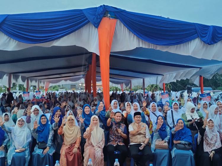 Agung Nugroho Saat Foto bersama Ribuan Emak-emak Forcintaku Binawidya di Jalan Beringin, Kelurahan Sungai Sibam, Binawidya, Jum'at (4/10/2024) sore.