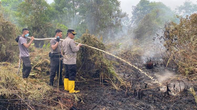 Tengah Puasa, Kapolres Indragiri Hilir Berjibaku Padamkan Karhutla