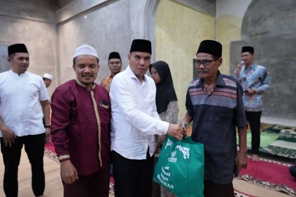 Tim I Safari Ramadhan Pemda Kampar 2024 saat menyerahkan bantuan di Masjid