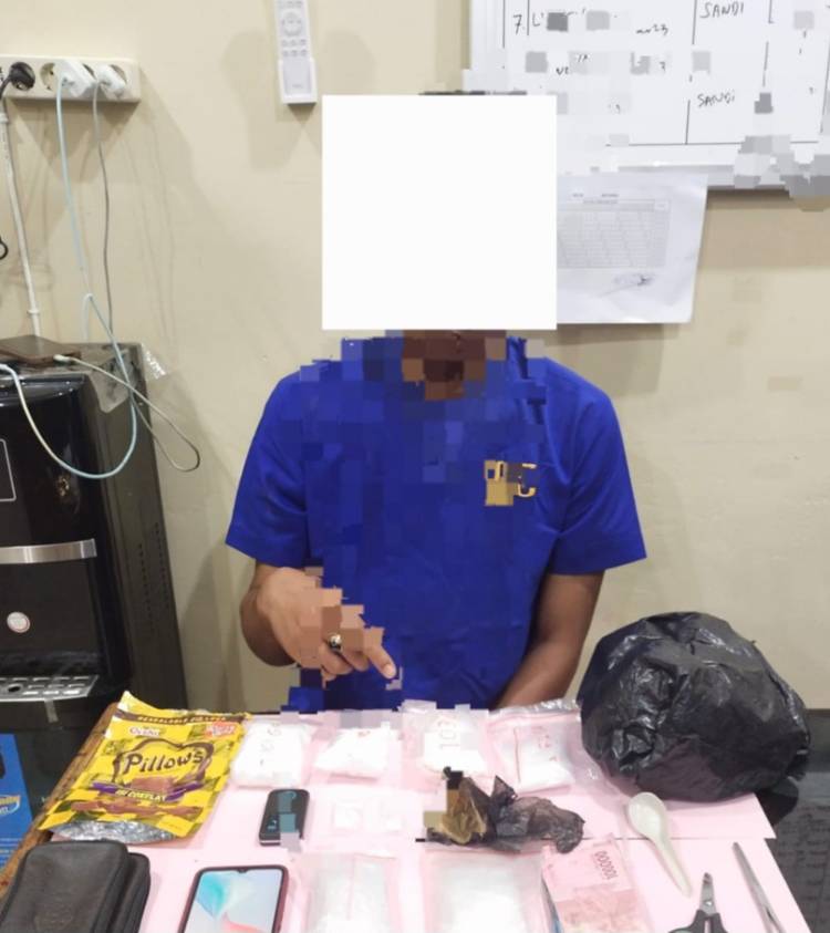 IH Alias IL (28) yang diduga bertindak sebagai pengedar turut diamankan bersama Barang Bukti (BB) berupa 6 paket diduga berisikan Narkotika Bukan Tanaman Jenis Shabu dengan berat kotor 365,54 Gram, 1 helai kantong plastik asoi warna hitam, 1 bungkus plastic snack merk Pillows warna kuning, 1 (satu) buah dompet kulit warna cokelat, 1 (satu) blok plastik klip obat warna bening, 1 helai bungkusan potongan plastik asoi warna hitam, uang tunai sebesar Rp. 900.000, 1 buah gunting kecil, 1 buah gunting jepit, 1 buah sendok plastik warna putih diduga digunakan sebagai sendok shabu, 1 buah potongan pipet plastik warna bening diduga sebagai sendok shabu, 1 unit timbangan digital merk Constan warna hitam dan 1 unit handphone android merk Vivo Y33s warna hitam.