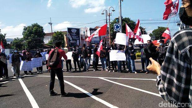 Demo mahasiswa di depan gedung DPRD Jember, Rabu (29/9/2021).