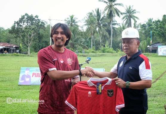 Kegiatan diawali penyerahan bola, cendera mata dan jersey sepak bola oleh mantan Pemain Timnas Indonesia Budi Sudarsono kepada Plt Bupati Kepulauan Meranti H Asmar.