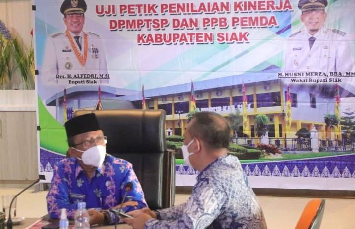 Dikatakan Arfan Usman didampingi Dinas Penanaman Modal Pelayanan Terpadu Satu Pintu (DPMPTSP) Siak Heriyanto saat tahapan penilaian yang dilakukan secara virtual pada Kamis (15/7/2021) pagi, di Siak live room lantai 2 kantor Bupati Siak.