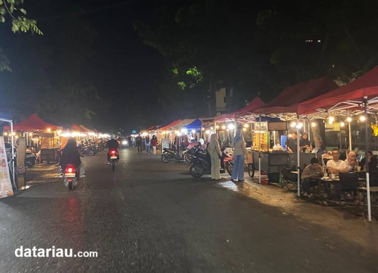 Suasana pusat kuliner UMKM di Jalan Cut Nyak Dien Kota Pekanbaru.