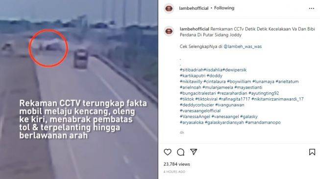Rekaman detik-detik Kecelakaan Vanessa Angel dan Bibi Ardiansyah [Instagram/@lambehofficial]