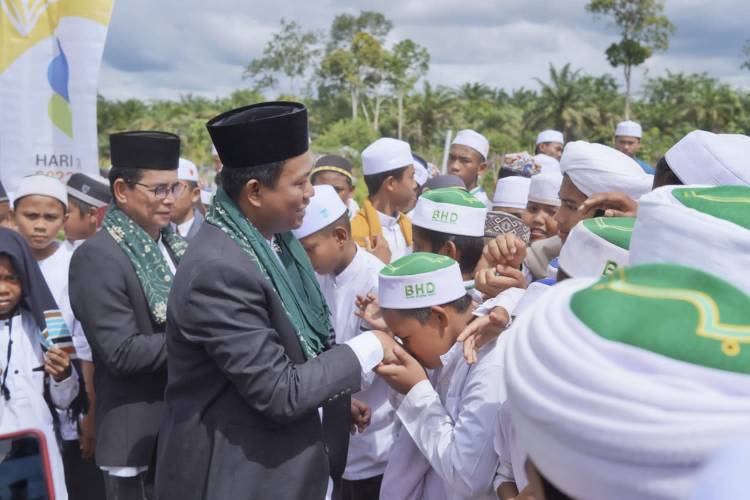 Upacara yang digelar di halaman Ponpes BHD tersebut diikuti ribuan santri dan secara langsung dihadiri Wakil Bupati Rohil H Sulaiman SS MH dan didampingi beberapa kepala OPD.