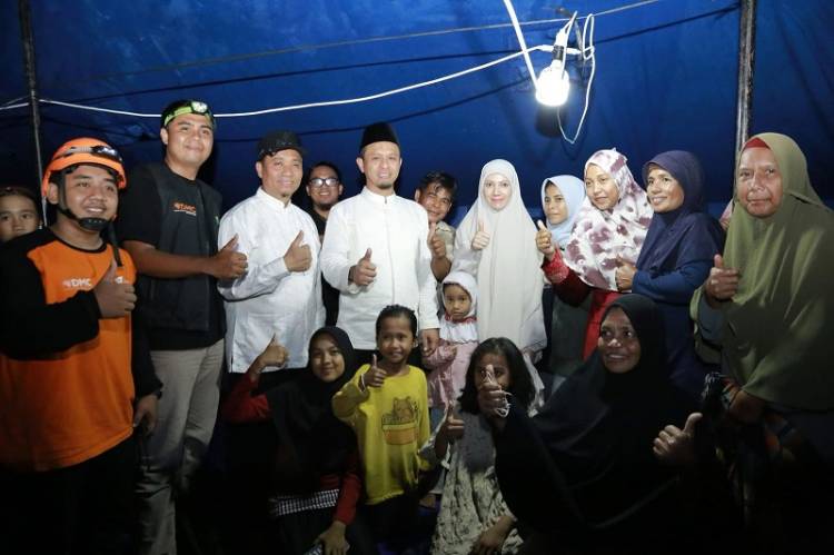 Markarius saat meninjau meninjau korban banjir di tenda pengungsian,
