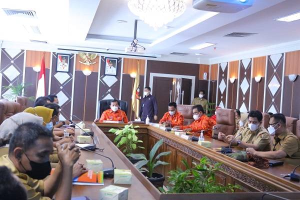 Walikota Pekanbaru Dr H Firdaus ST MT, menerima kedatangan tim audit Inspektorat Riau di ruangan rapat Gedung Utama Kompleks Perkantoran Tenayan Raya.