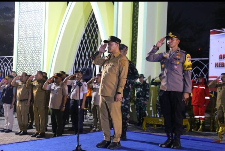 PEKANBARU, datariau.com - Walikota Pekanbaru Agung Nugroho, memimpin apel kesiapan pengendalian bencana Kebakaran Hutan dan Lahan (Karhutla). Apel berlangsung di halaman Masjid Raya An-Nur, Selasa (22/7/2025) malam.