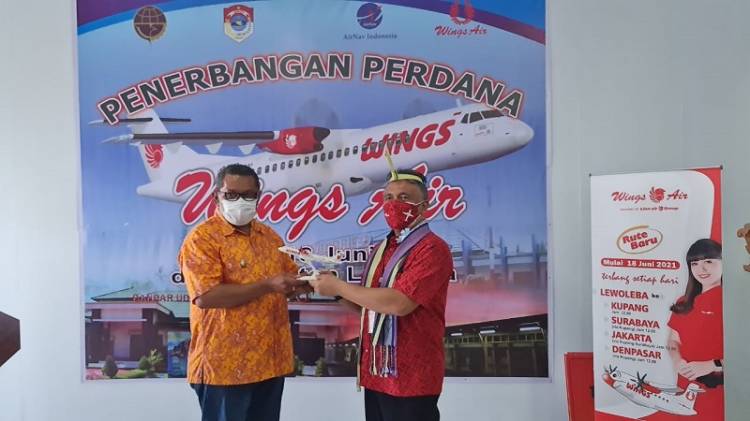 "Peresmian terbang pertama di Lewoleba ini, untuk simbolis berupa penyerahan miniatur pesawat ATR 72 kepada Bupati Kabupaten Lembata, yang diwakilkan Wakil Bupati Kabupaten Lembata, Thomas Ola Langoday oleh Capt. Decky Arianto, Operation Manager Wings Air selaku perwakilan manajemen Wings Air," kata Danang.