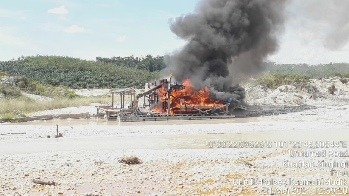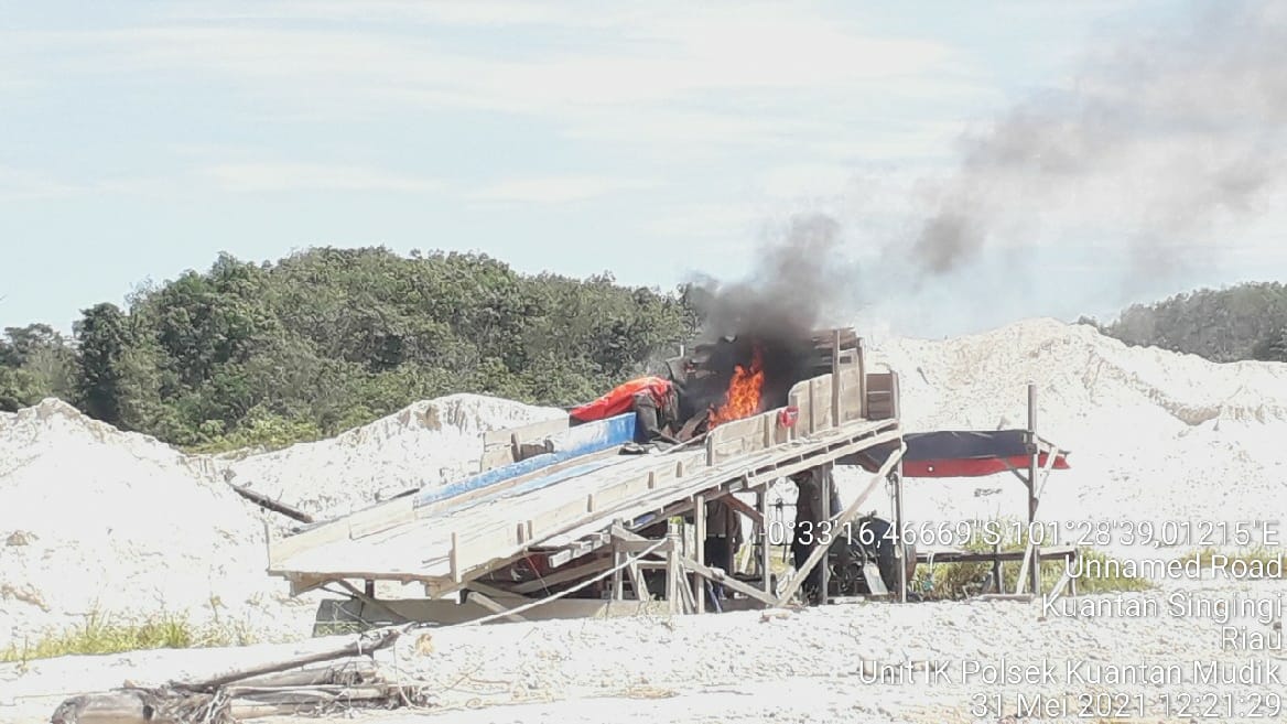 10 Tempat Penambangan Emas Ilegal Dibakar Jajaran Polres Kuansing