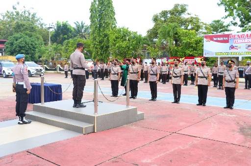 Atas nama pribadi dan institusi, Kapolres mengucapkan terima kasih atas pengabdian pejabat lama, mutasi hal yang biasa diinstitusi Polri, tetap jalin komunikasi dan silaturahmi yang baik. Bagi pejabat yang baru, tunjukan dedikasi dan tanggung jawab atas amanah yang di berikan demi kemajuan Institusi Polri.