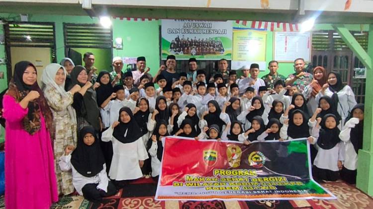 50 Anak di Panti Asuhan Al Uswah Terima Makan Bergizi dari TNI di Kabupaten Rokan Hulu