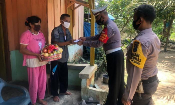 Polisi di Kampar Berbagi Rezeki dengan Masyarakat Miskin di Desa Bukit Keratai Rumbio Jaya