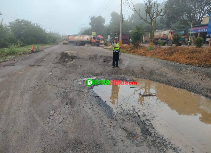 Agar Lalin Lancar, Satlantas Polres Rohil Cek Jalan Rusak di Balai Jaya