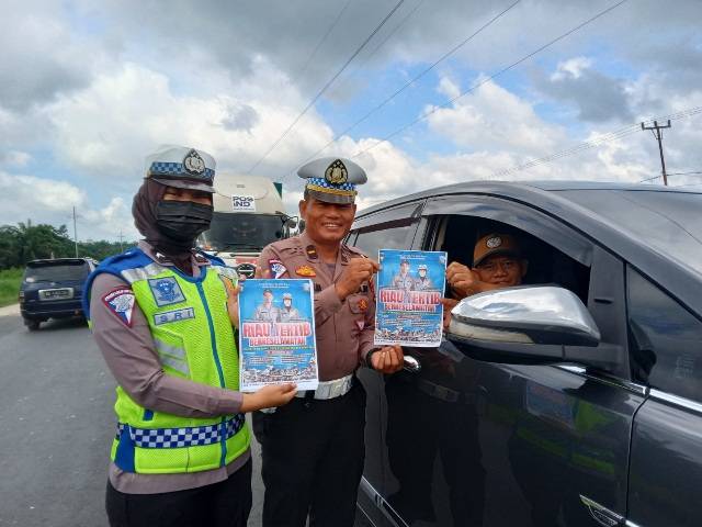 Ajak Tertib Lalin, Satlantas Bagikan 400 Brosur dan 100 Stiker Keselamatan