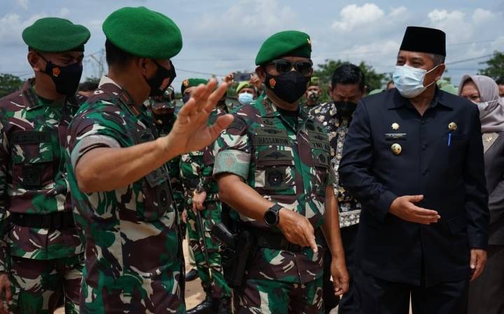 Bupati Siak Drs H Alfedri MSi bersama Mayjen TNI Hasanuddin meresikan Markas Kodim 0322/Siak.