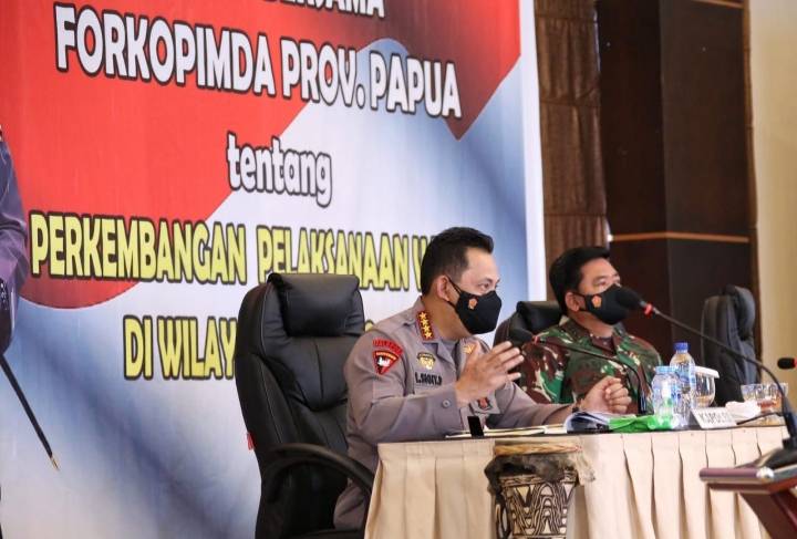 Sementara itu, Panglima dan Kapolri juga memimpin rapat bersama dengan Forkopimda Provinsi Papua. Sigit menyampaikan bahwa, strategi pengendalian Covid-19 harus tetap diterapkan di tengah pelaksanaan PON ke-XX di Papua.