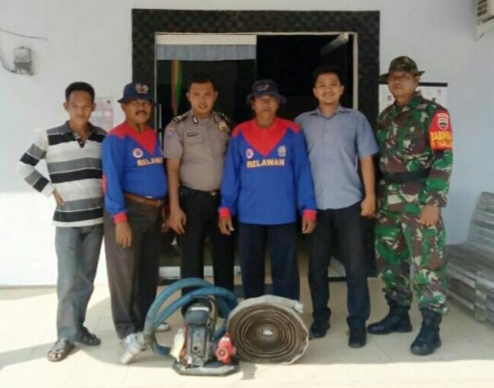 Bhabinkantibmas Kampung Tualang M Eko dan Babinsa Koramil 10 Perawang bersama MPA Kampung Tualang cek perlengkapan alat pemadam kebakaran.