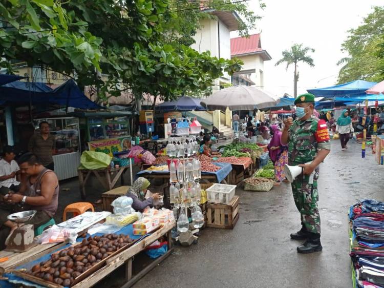 Babinsa Kodim 0301/PBR Terus Imbau Warga Untuk Disiplin Prokes Saat di Pasar Rumbai