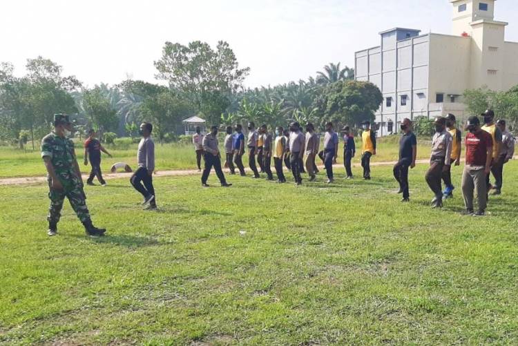 Tampak Sertu Zulhamdi Nasution saat melatih Security PT RAS tentang ca