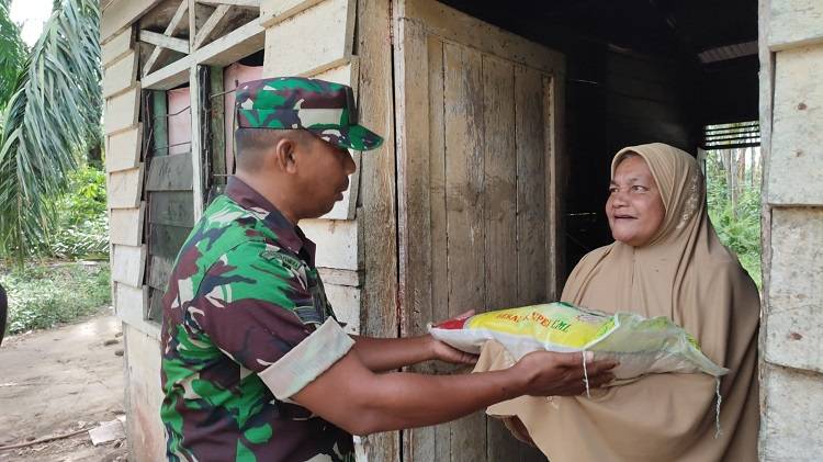 Babinsa Masuk Dapur, TNI Berbagi Sembako di Desa Muara Musu Rohul