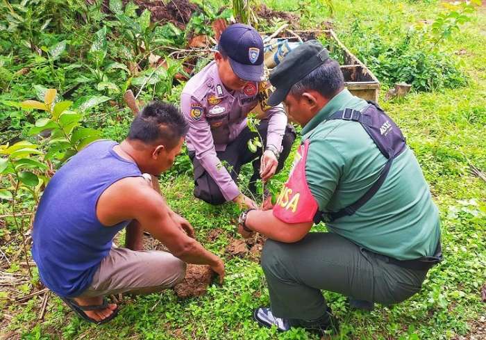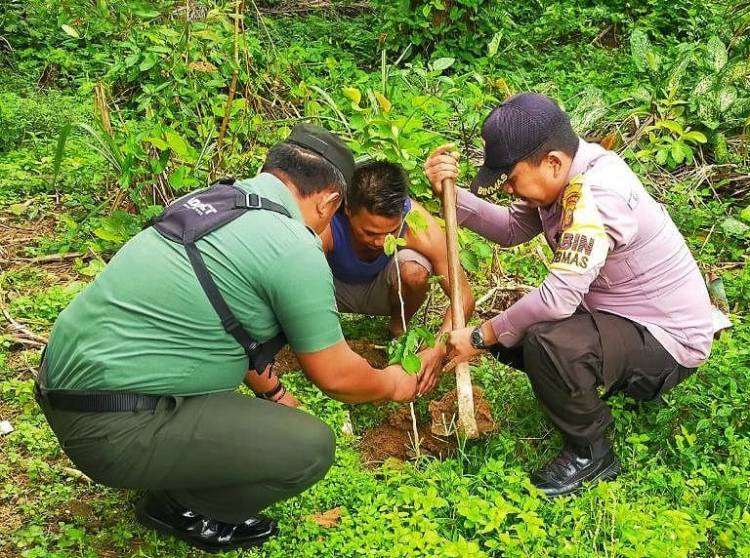 Babinsa TNI Koramil 02 Rambah Tanam Pohon di Desa Karya Mulya