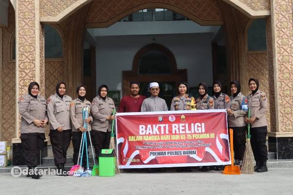 Bakti Religi, Polwan Polres Dumai Bersih-bersih di Rumah Ibadah