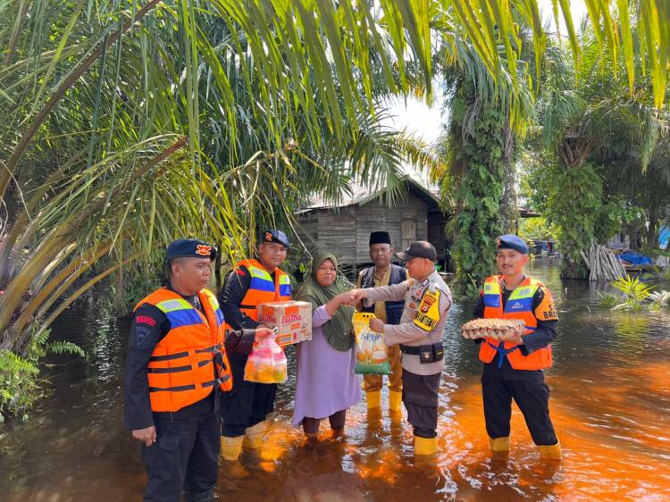 Batalyon B Pelopor dan Pemkab Rohil Bantu Korban Banjir Desa Sei Kapas