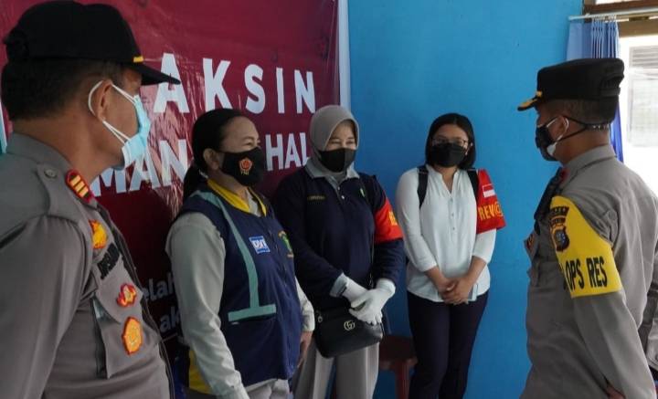 Batalyon Vaksinator Covid-19 Polda Riau ke Puskesmas Lubuk Dalam.