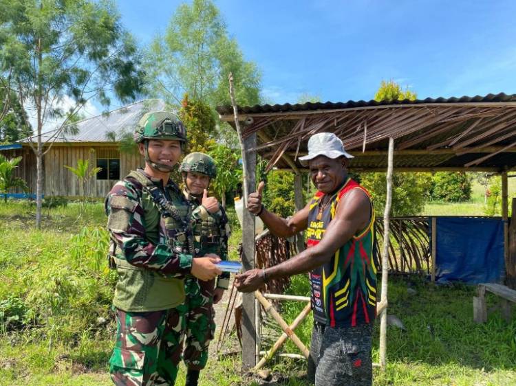 Berbagi Alkitab, Satgas Yonif 521/DY Pererat Silaturahmi di Kampung Wekolani