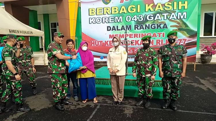 Berbagi Kasih, Korem 043 Gatam berbagi 300 Bingkisan Kepada Masyarakat