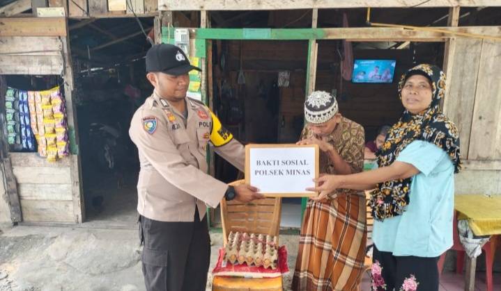 Berkah Ramadhan, Polsek Minas Peduli Salurkan Bantuan Sembako Bagi Warga Kurang Mampu