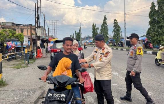 Bersama Personil Polsek Tualang, Kompol Hendrix SH MH Berbagi Takjil Jelang Buka Puasa