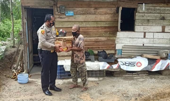 Bhabinkamtibmas Bripka Jumi Sihombing Berikan Bantuan Sembako Kepada Bapak Amani di PS Barat