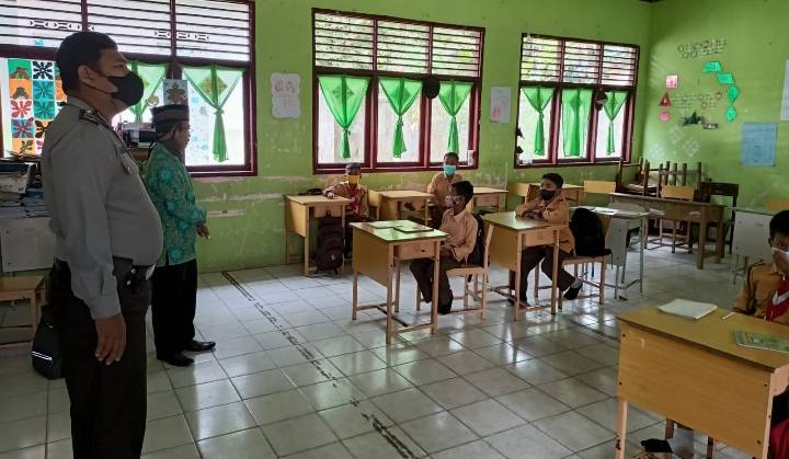 Bhabinkamtibmas Perawang Barat Lakukan Pengecekan Prokes di SDN 04 Tualang