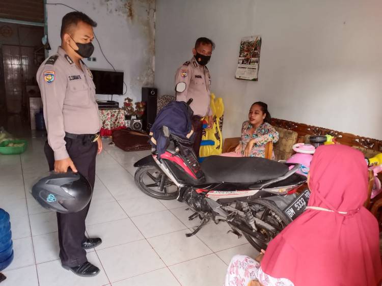 Keterangan Foto : Bhabinkamtibmas Polsek Limapuluh Aipda Faizul Bersama Aipda Slamet Sugiarto Saat Mendatangi Rumah Keluarga Yang Cekcok, Rabu (1/9/2021).